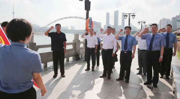 为深入贯彻习近平生态文明思想,凝聚长江大保护合力,9月11日,江汉区人民检察院与江汉区水务和湖泊局联合开展了以“弘扬三大精神 推进长江保护 激励担当作为”为主题的巡江护江支部主题党日活动。区检察院党组书记、检察长周罡,党组成员、副检察长崔剑,副检察长廖霞林,“唯益江来”工作室成员及相关支部书记,区水务和湖泊局党组书记、局长胡卫斌,局党组成员、总工程师曾燕飞,局党组成员、副局长陈雷及中层干部共同参与此次活动。