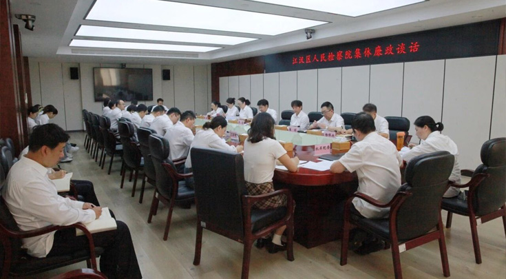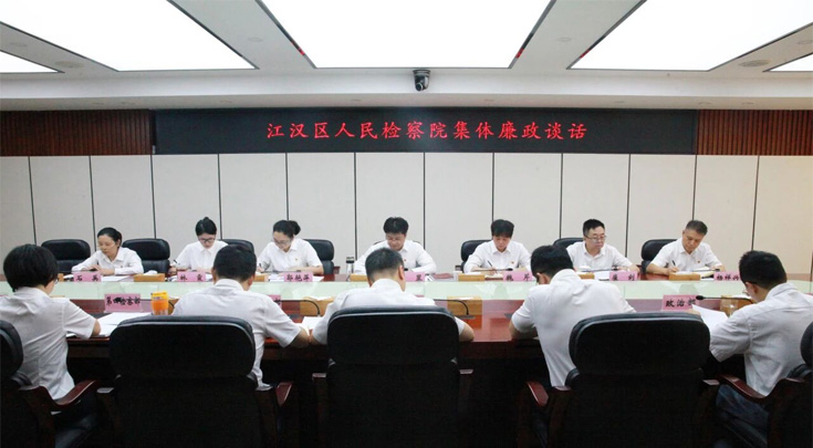 为持续巩固中央八项规定精神学习教育成果,推动全面从严治检走深走实,根据检察队伍突出问题集中教育整治工作安排,9月16日上午,武汉市江汉区人民检察院组织开展领导干部集体廉政谈话。院党组书记、检察长周罡主持会议,区纪委监委派出第三纪检监察组组长魏芹作廉政谈话。全体院领导、中层干部参加。
