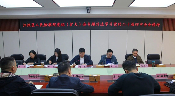 10月28日上午,武汉市江汉区人民检察院召开党组(扩大)会议,专题传达学习党的二十届四中全会精神,研究贯彻落实举措。院党组书记、检察长周罡主持会议并讲话。